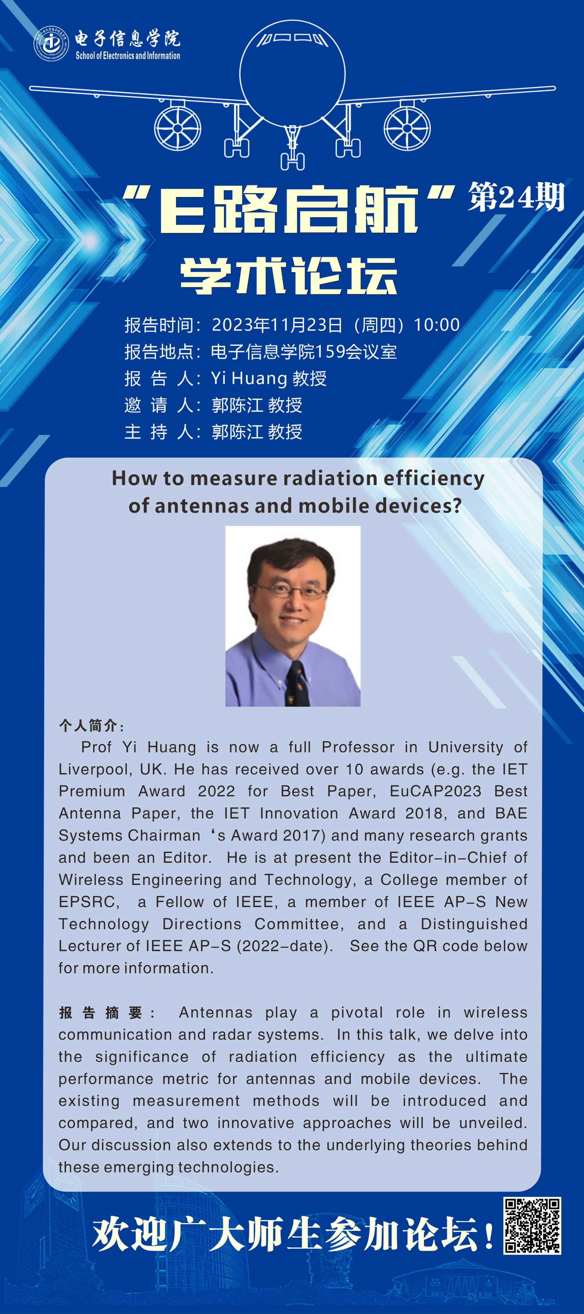 “E路启航”学术论坛第24期 How to measure radiation efficiency of antennas and mobile devices?