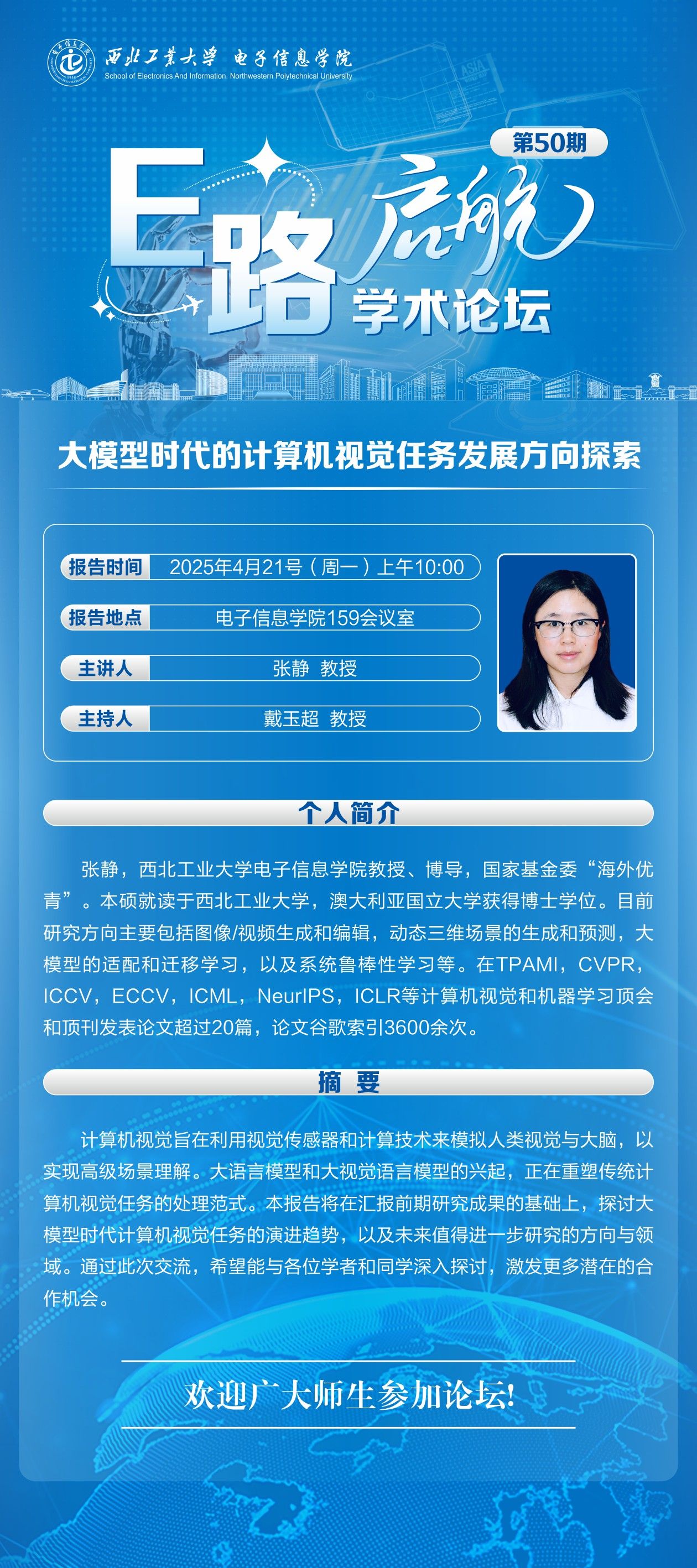 “E路启航”学术论坛第50期——大模型时代的计算机视觉任务发展方向探索