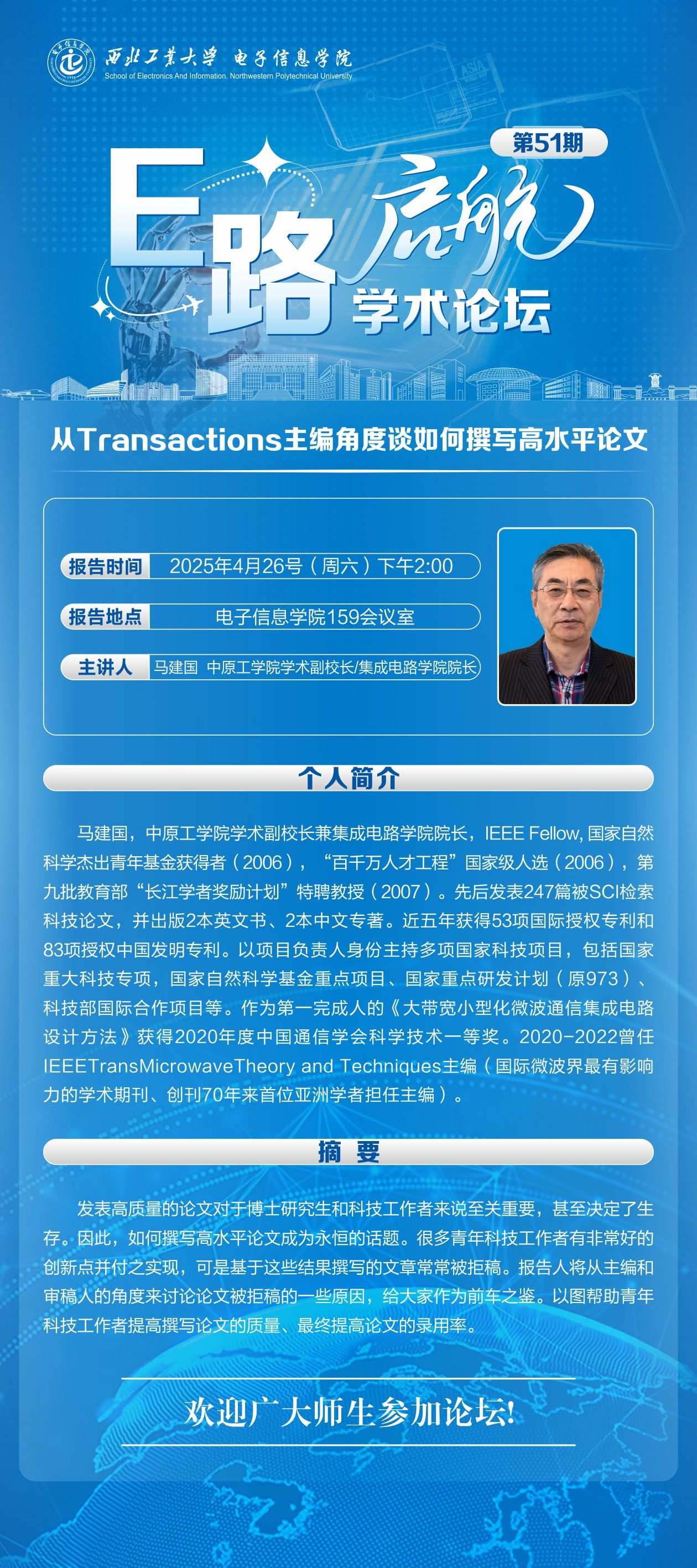 “E路启航”学术论坛第51期——从Transactions主编角度谈如何撰写高水平论文