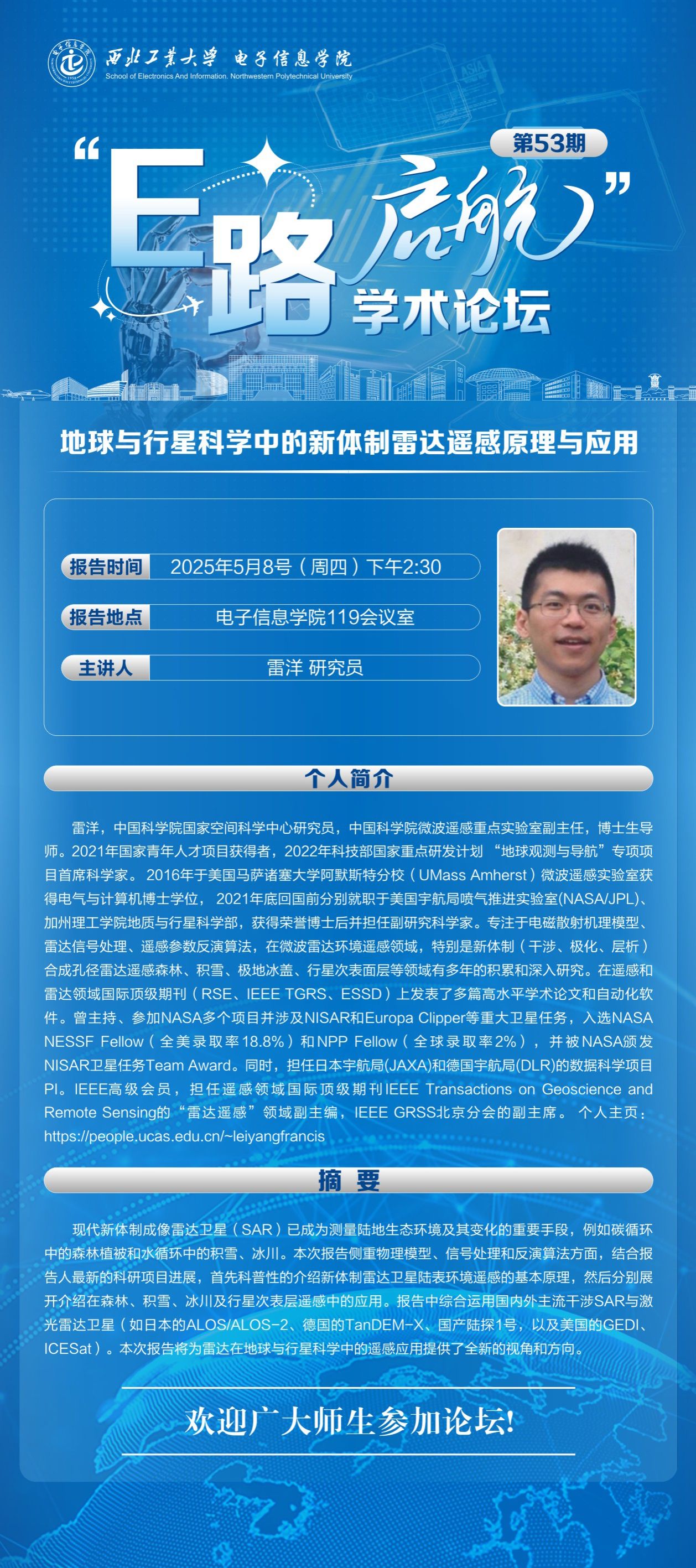 “E路启航”学术论坛第53期——地球与行星科学中的新体制雷达遥感原理与应用