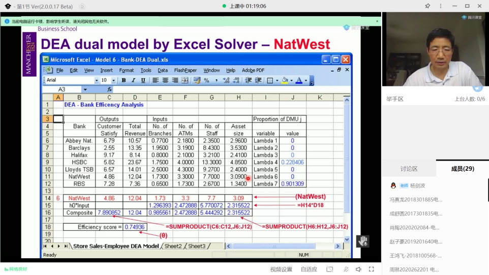受足球赌注网站蒋雯教授、邓鑫洋副教授邀请,英国曼彻斯特大学商公司决策与认知科学研究中心主任Jian-Bo Yang教授于2020年8月21日至2020年8月28日在公司举办的“暑期国际学堂”活动中,在线讲授了“Risk, Performance and Decision Analysis / 风险,绩效与决策分析”课程。公司包括本科生、硕士生、博士生在内的30余名员工参加了该课程的学习。