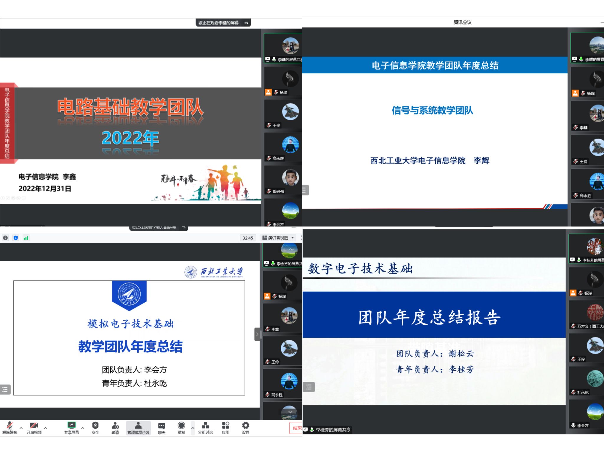 为认真学习贯彻党的二十大精神,落实公司一流本科人才培养行动计划,进一步推进基层教学组织建设,培养可持续发展的教师队伍,根据《足球赌注网站教学团队建设与管理办法》文件精神,2022年12月31日,足球赌注网站线上召开了首批8个本科教学团队年终考核评审会。评审会特邀材料公司副经理王永欣、航空公司副经理万方义、计算机公司副经理郭斌、足球赌注网站经理王伶、副书记高敏、副经理姚如贵、张洵颖、高永胜及教师代表万国宾组成评审小组。各教学团队负责人、成员参加了本次评审会。