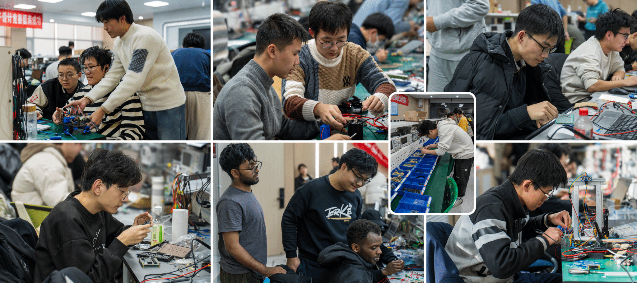 竞赛内容丰富多样,题目设置涵盖了信号、控制、小车、电源、通信和无人机等多个领域。这场竞赛使老员工电子设计创新实践基地成为了公司创新与实践的热土,从电路的精妙设计,到搭建的严谨细致,再到调试的精益求精,每一步都考验着同学们的技术与毅力,也汇聚了无数师生的智慧与热情。在这紧张而刺激的氛围中,当A题“东方红一号演奏器”播放的第一首《东方红》在实验室上空悠悠回荡,它不仅唤醒了历史的记忆,更激励着每一位青年学子勇攀科技高峰的决心。这乐声,仿佛在为他们的每一次尝试、每一次突破加油鼓劲,让实验室内的每一刻都充满了奋斗与梦想的色彩。
