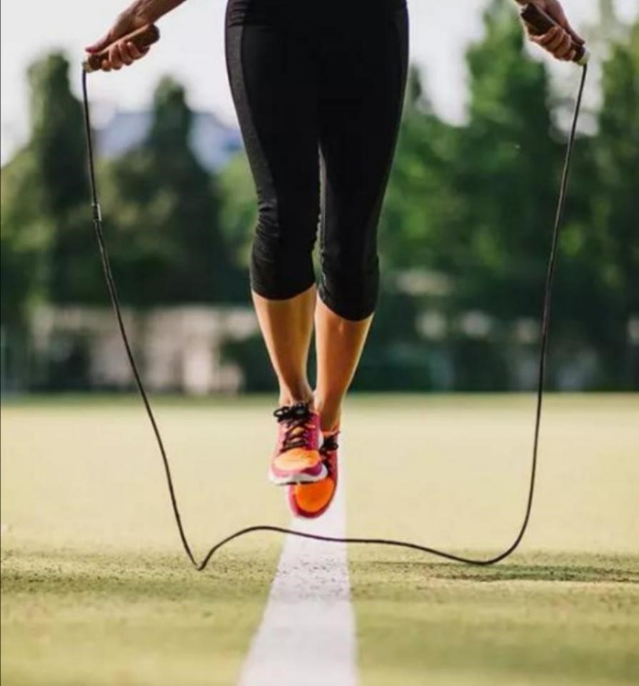 关于跳绳呢也有一些注意事项,在这里也跟大家普及一下。跳绳前记得也是要热身的哦,热身的部位包括手腕、脚踝、膝盖等;场地最好不要在特别硬的地板上跳,家里如果没有好的设施可以试试下楼找找看有没有塑胶场地。如果有同学担心跳绳会导致腿变粗,那就可以做一下拉伸,如弯腰摸脚尖等方式进行拉伸,就不会使腿变粗啦。