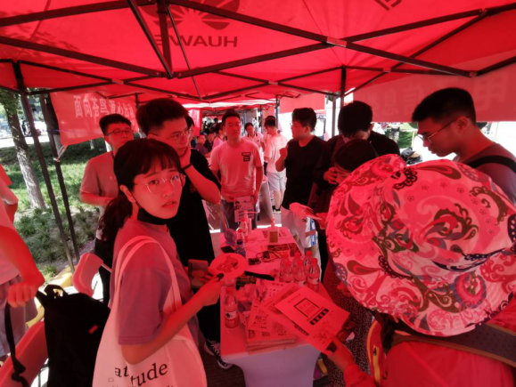 外场咨询活动如火如荼,各位工作人员为新生以及家长细心地解释报到及入学问题,并且发放新生手册,为新生在公司的生活提供指引性的帮助。