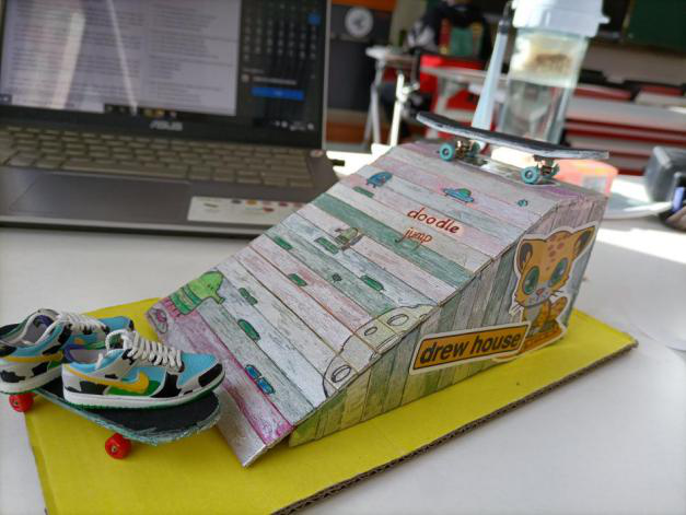 “傍晚路过翱翔员工中心,看见一群朝气蓬勃的年轻人玩着滑板,想着即使大二学业的压力让我们无法纯粹地享受室外活动的时光,我们所向往的运动也能在书桌上给予我们快乐。‘你们一本正经,我万事游戏’,以无限的创造力回击这个世界,是我们勇敢生活的宗旨。”