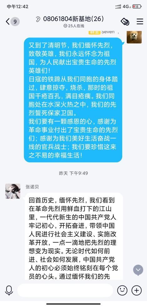 电信五班的同学们以线上QQ群的形式组织了先烈故事分享会,卢英杰、周扬、陈蕊、朱潜等同学分别分享了邱少云、赵一曼、刘胡兰、董存瑞等先烈们的英勇事迹,与同学们一起缅怀先烈寄托哀思。同学们学习先烈们的优秀品质,努力传承英雄精神,更加珍惜现在的美好生活。