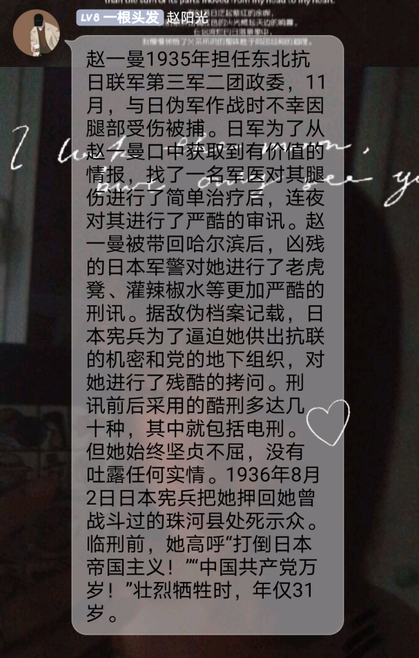 他们的肉体虽已不在,但他们的精神却从未离去。他们为了祖国献身,祖国和人民永远不会将他们忘记!李贺洋:英雄离去,但信念不灭,理想犹在。他们的精神值得我们学习与传承。我们青年一代定要铭记他们为之流血牺牲的伟大理想,努力奋斗,砥砺前行!