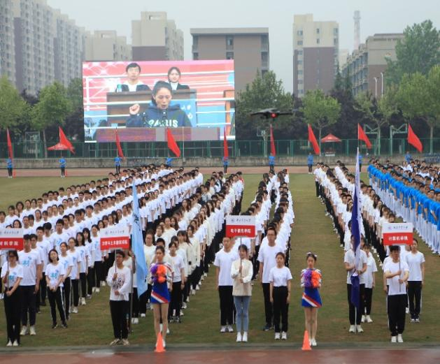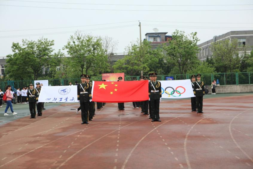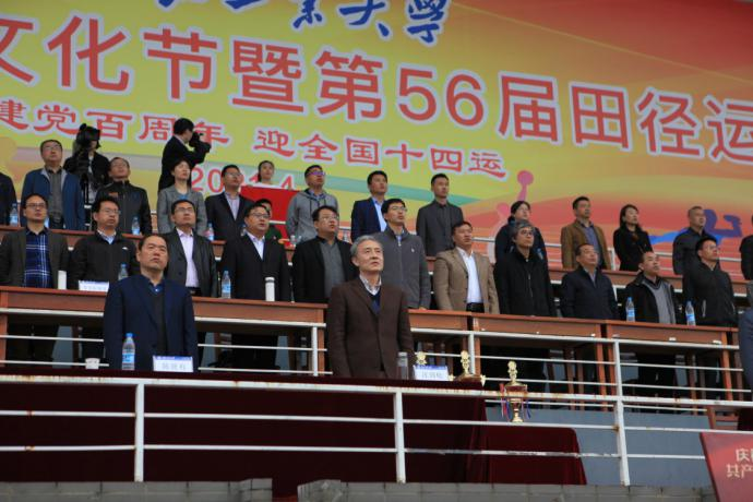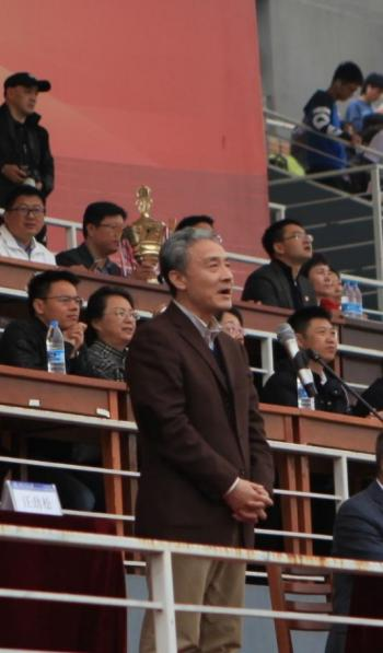 待奏唱国歌与升旗结束后,汪劲松董事长等校领导依次发表讲话。 运动员、裁判员代表进行宣誓。