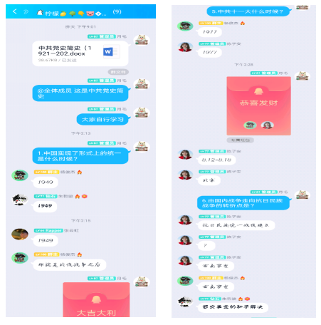 我们团支部在这学期开展了党史问答活动,加深了我们对党的认识和了解。一切向前走,都不能忘记走过的路;走得再远、走到再光辉的未来,也不能忘记走过的过去,不能忘记为什么出发。