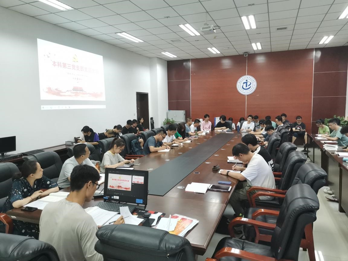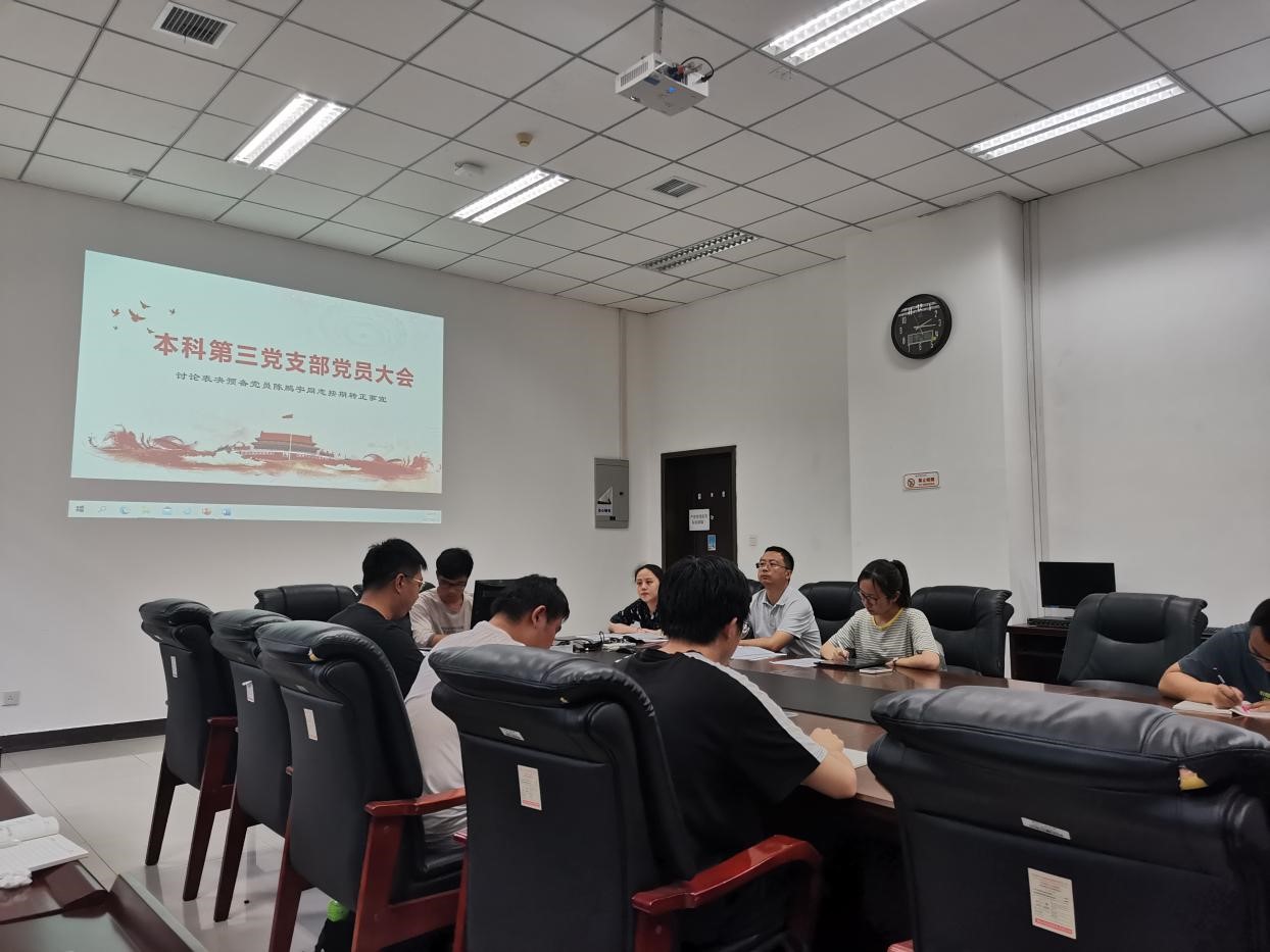 2021年6月24日,足球赌注网站本科第三党支部召开支部党员大会,大会由王鹏同志主持,支部全体党员出席,电子信息公司党委副书记彭亮同志列席。