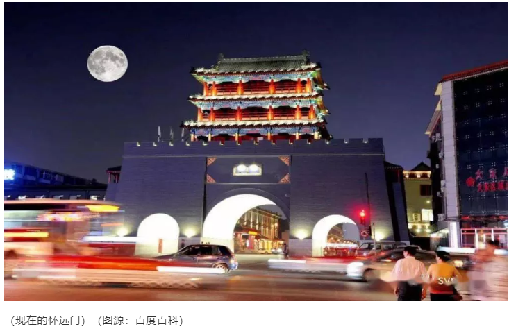 怀远门位于方城内沈阳路西端,俗称大西门,始建于1631年,为沈阳老城垣的重要标志。1994年,沈河区政府拓其原址,增其旧制,重修了怀远门。在重修后,怀远门作为沈阳重要的历史文化古迹之一,又数次的得以被修缮与改造,成为了今天灯火辉煌的样子。
