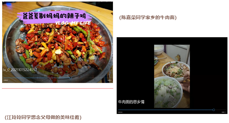 本次活动自10月1日举办以来,同学们踊跃参加,大家都希望借此活动制作美食视频,从而表达对家乡的思念之情。甚至有的同学因为一些原因被隔离也想尽各种办法加紧制作视频内容,希望把自己家乡的特色美食分享给同学们!
