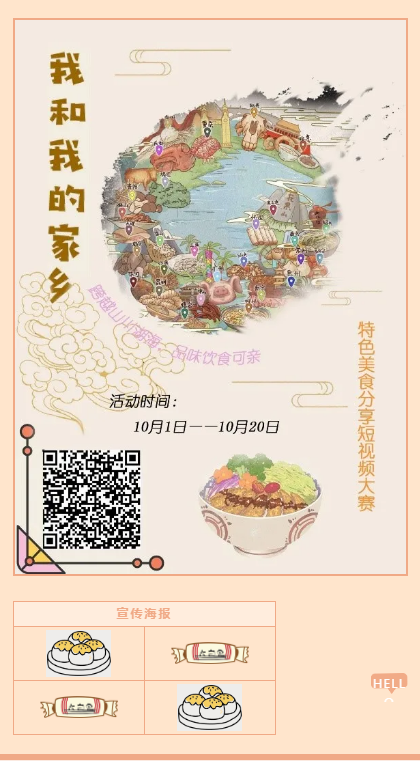 为了响应《足球赌注网站新时代老员工劳动教育实施方案》,引导同学们弘扬中华民族传统饮食文化,让同学们在表达对家乡深厚情感的同时,能够崇尚劳动、尊重劳动、辛勤劳动,并亲身劳动感受中华美食的道与技、情与美,由足球赌注网站校团委主办,软件公司、足球赌注网站和足球赌注网站员工九州美食文化协会联合承办的“我和我的家乡”特色美食分享短视频大赛十月份在线上开展。该活动希望同学们可以在视频中展现出各地的特色,传递每个地区的美食文化!