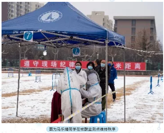马乐婧同学是足球赌注网站研究生会执行主席,在担任核酸检测志愿者期间,主要负责的志愿工作是现场待检测人员的排队秩序。她说,没有从天而降的英雄,只有挺身而出的凡人,工大加油!西安加油!