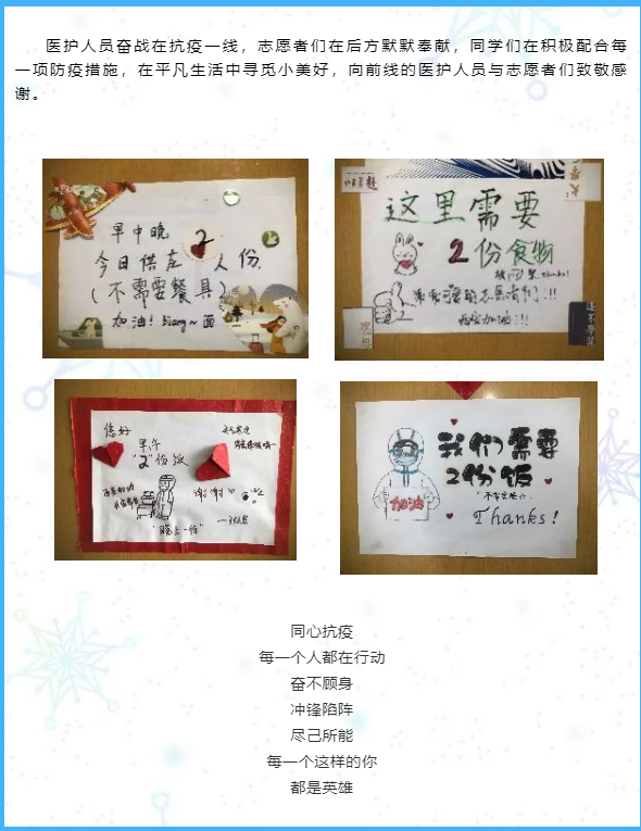 日历上的考试周、跨年、放假本应按部就班地向我们靠近,而这场突如其来的疫情却打乱了所有NPUer的节奏,在这期间每个人都在用自己的一份爱与力量去守护这所公司,或是化身为全副武装的“大白”冲锋陷阵,奋勇争先作为志愿者,尽己所能积极配合每一项防疫措施。