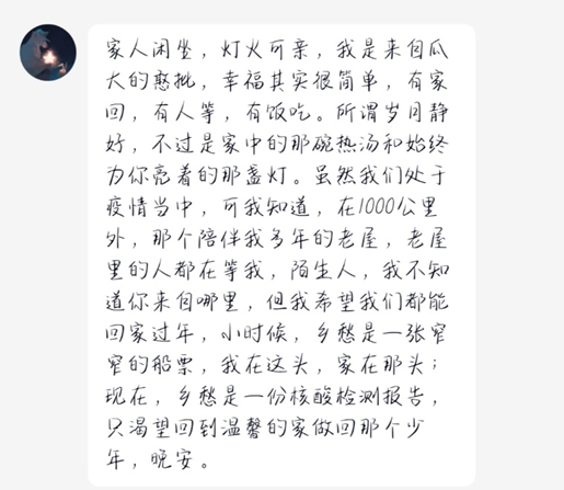 由于疫情加剧,12月23日西安市进入封闭管理。政策的变化让西工大的同学们陷入对未知的迷茫中。此时,“互助文档”的出现,缓解了同学们对物资供应的不安;“晚安计划”的出现,更是抚慰了同学们焦躁不安的心情。为此,足球赌注网站“信愿启航,微光成炬”实践队采访了“互助文档”及“晚安计划”的策划人——足球赌注网站团委副书记徐健凯。