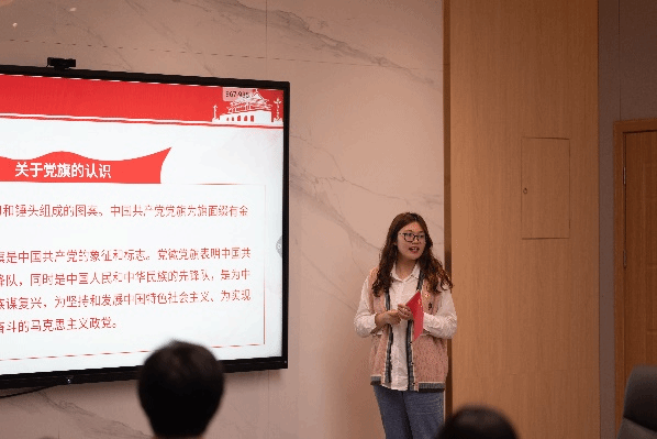 陈学润同志介绍了中国共产党全国代表大会的重要地位,并且以新时代大背景切入,分析了当前的国际局势与世界形势,及我党在当前形势下召开党的二十大的重要意义。王一涵同志以党旗与国旗的发展历史与具体含义为主线,介绍了我党从新民主主义革命时期一路走来,团结奋斗的辉煌历程。在讲授过程中,支部中同志们认真聆听,踊跃发言。
