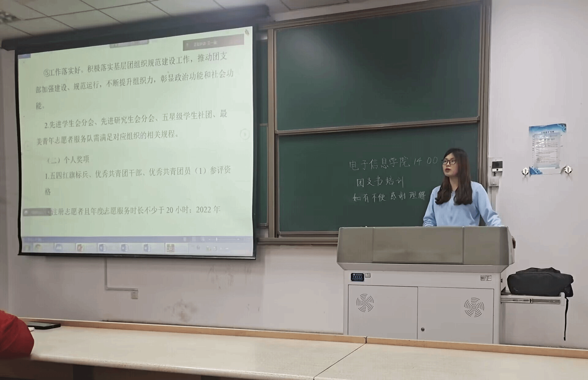 王嘉悦老师针对落实班团一体化要求进行了细致的讲解,给各支部团支书的基础工作提出了几点建议,对五四表彰的注意事项进行了简单的介绍,强调了团支部基础建设和团支部日常工作的重要性,列举了青年大学习、团日活动等日常工作的可创新形式,指出了目前工作中存在的一些不足,提出了一些可行性较高的解决方法,为各支部团支书的工作提供了一定的帮助。