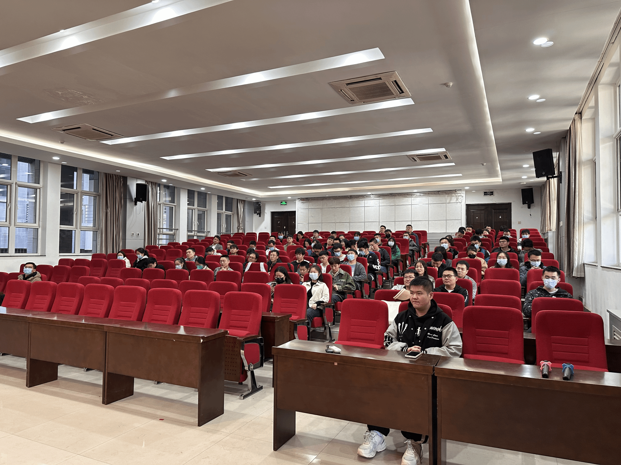 支元杰从日常管理、奖学金、安全生产等分别进行了梳理。在日常管理方面,强调了请假、签字制度的调整,以及教务、毕业信息的关注等;在奖学金上,重点对春博的数据成果收集进行了说明;最后,提醒同学们保持实验室和宿舍卫生、注意安全用电和出行安全、谨防诈骗等。针对近期流感形式严峻,又逢换季天气多变,支元杰提醒同学们要做好个人防护,预防感冒和流行性疾病。