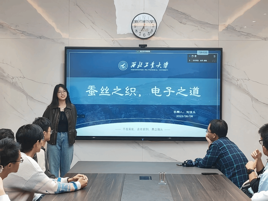 首先是刘佳乐同学关于“蚕丝之织,电子之道”社会实践的分享。刘佳乐同学从主题选择、实践准备、内容、总结等方面为同学们做了详细讲解。其中涉及的“蚕丝存储硬盘”立足科技前沿,力求用数字化、信息化的科技力量传承传统文化。刘佳乐同学还强调了合理采访和记录的重要性。