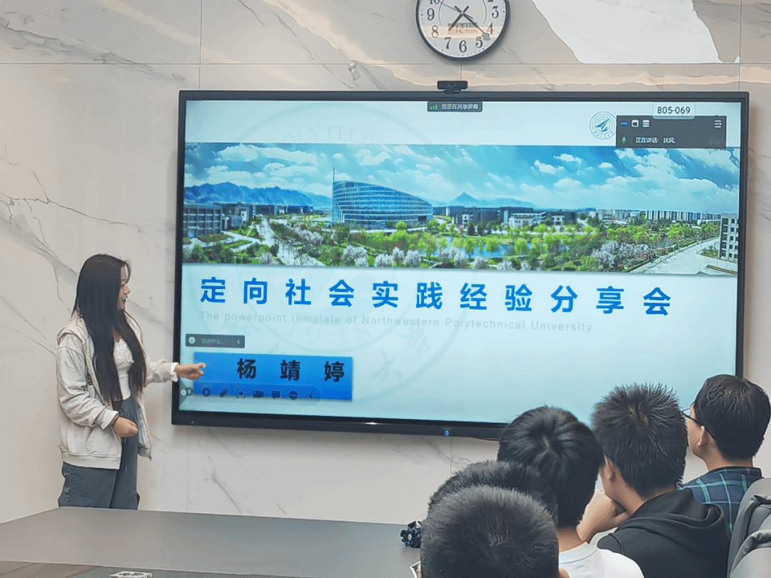 会议由范依涵同学主持,在简单介绍了公司社会实践的基本情况后,3位在刚结束的暑期社会实践中取得优异成果的同学为2023级新生分享社会实践经验。
