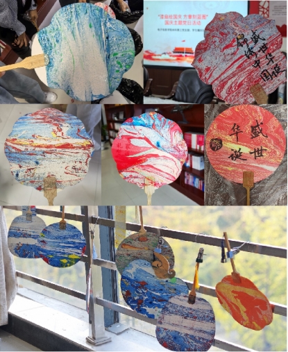 雕刻体验活动结束后,大家开始了漆扇体验活动。大家按照自己的构思将不同颜色的漂漆混合在水中,有的以红色和黄色为主题色,构筑国泰民安、欣欣向荣的盛世画卷,表达对祖国繁荣、人民幸福的美好祝愿;有的则以蓝色为扇面主题色,紧扣公司“三航”特色,寄予科技水平不断进步、校园事业蓬勃发展的寓意。漆扇制作完成后,大家在扇面上写上祝福语并盖上亲手雕刻的印章,为本次活动圆满收官。