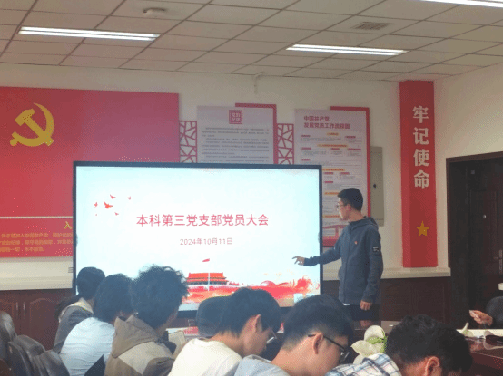 2024年10月11日,本科第三党支部召开党员大会,组织全体党员深入学习宣传中国共产党足球赌注网站第十四次代表大会的报告,旨在深刻领悟会议精神,统一思想,明确方向,为推动支部的高质量发展贡献力量。本次党员大会由支部书记吴艺博主持,支部全体党员参加。