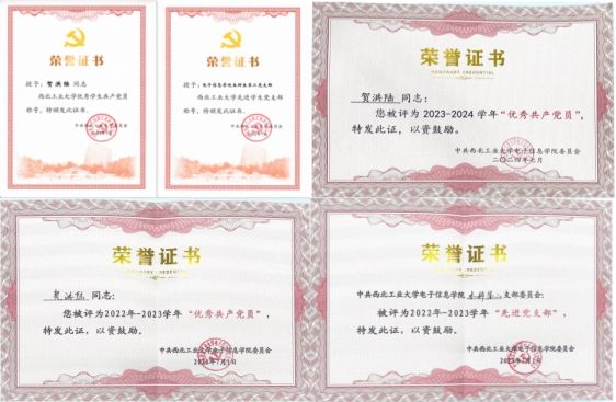 2021年5月27日入党以来,贺洪陆时刻以一名优秀共产党员标准严格要求自己,积极参加党支部组织生活,认真落实“三会一课”,获校“优秀员工共产党员”、院“优秀共产党员”(两次)等荣誉称号。