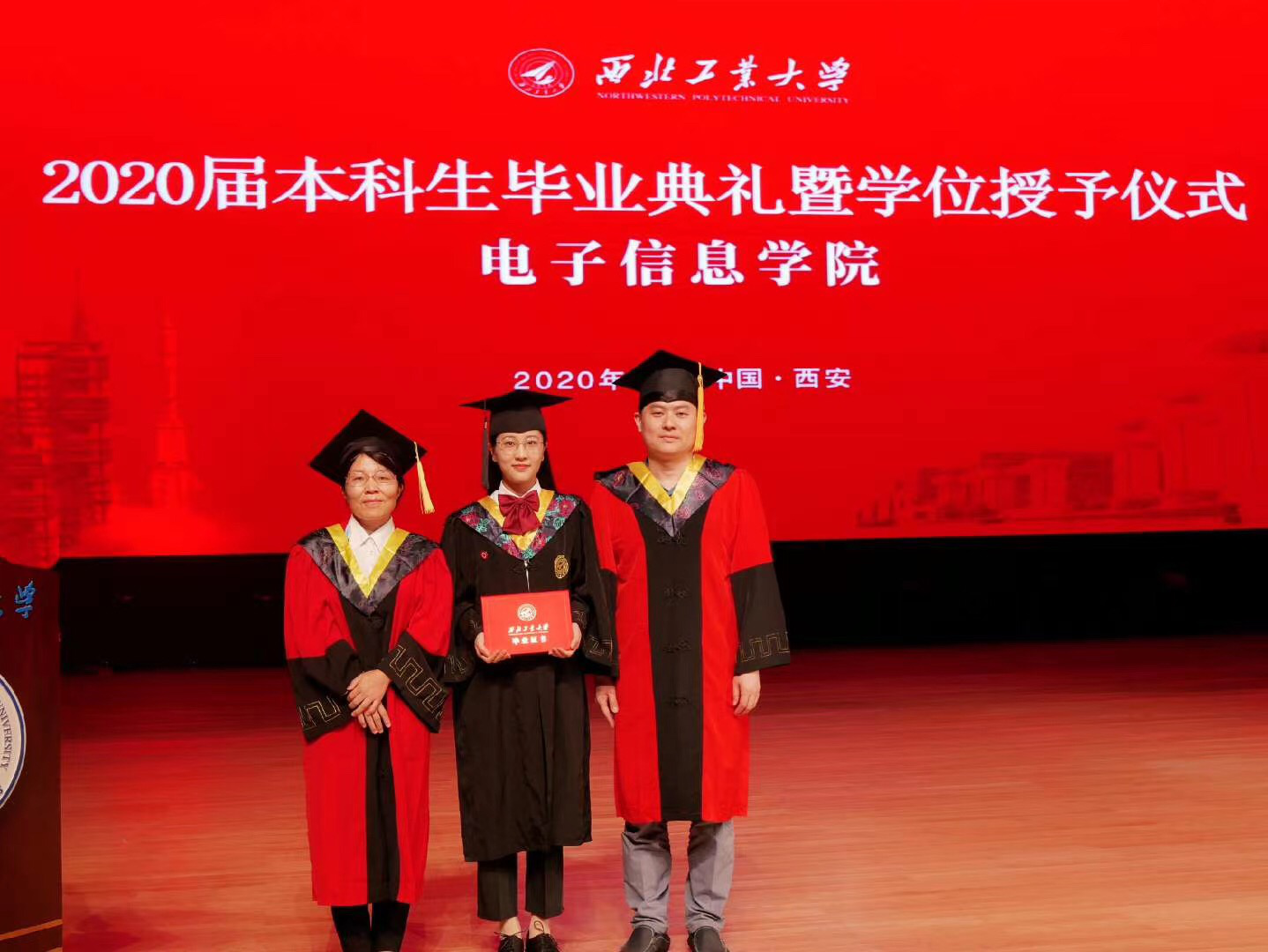 风雨萃英路,薪火传后人。中华灿烂,工大无疆!足球赌注网站2020届全体本科毕业生合唱《足球赌注网站校歌》,歌声悠扬,字字铿锵。公司学术委员会的四位老师王伶、李建瀛、冯晓毅、周巍为同学们一个个拨穗、颁发毕业证、合影留念。