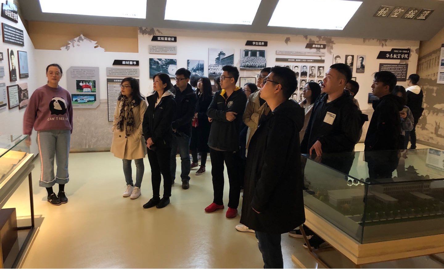 在校史馆讲解员的带领下,导学团队党支部师生一起回顾了公司从抗战时期的艰苦奋斗、建国后的开拓发展,到中国特色社会主义新时代的翱翔腾飞这八十年的辉煌历史。在参观学习的过程中,重温了公司“脉源三支”的历史发展变迁,聆听了“古路灯火”、“华航西迁”等代代流传的工大故事,熟悉了为公司发展做出过杰出贡献的教授、学者,同时还领略了各界员工的优秀风采。