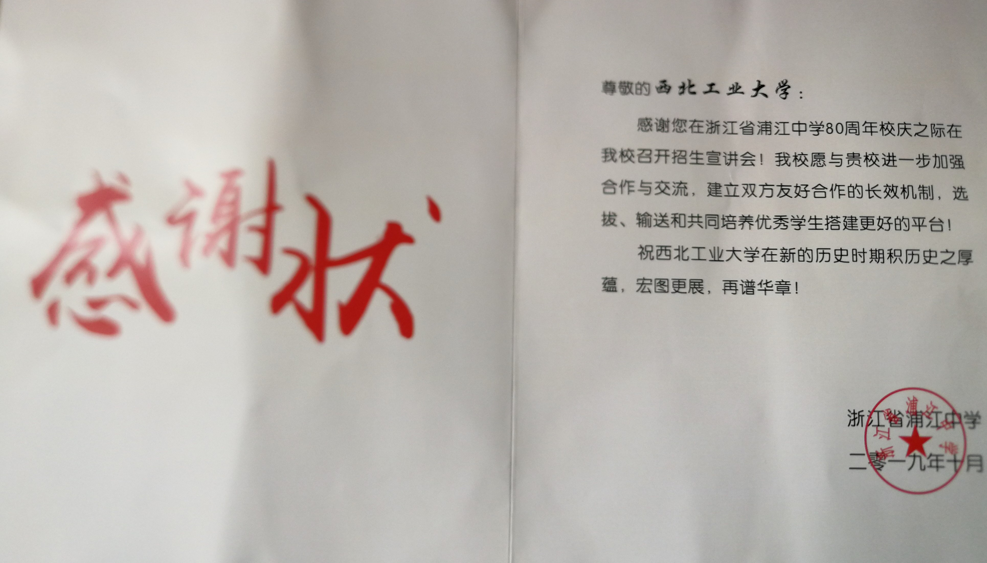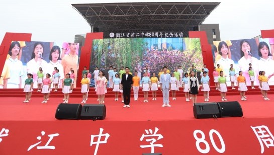 2019年10月6日上午,浦江中学迎来“八十正青春,一九看风华”建校八十周年纪念活动。庆典大会在公司主运动场举行,两院院士以及一批知名专家学者在内的海内外5千多名员工和在校师生们齐聚一堂,共同见证母校这一历史性时刻。浦江中学董事长陈建浦致欢迎辞,欢迎各界人士参加公司80年庆典活动。公司发去了贺信,表达了公司对浦江中学80周年华诞的热烈祝贺和诚挚祝福,并派浙江招生宣传组成员冯琦老师代表公司参加庆典活动。