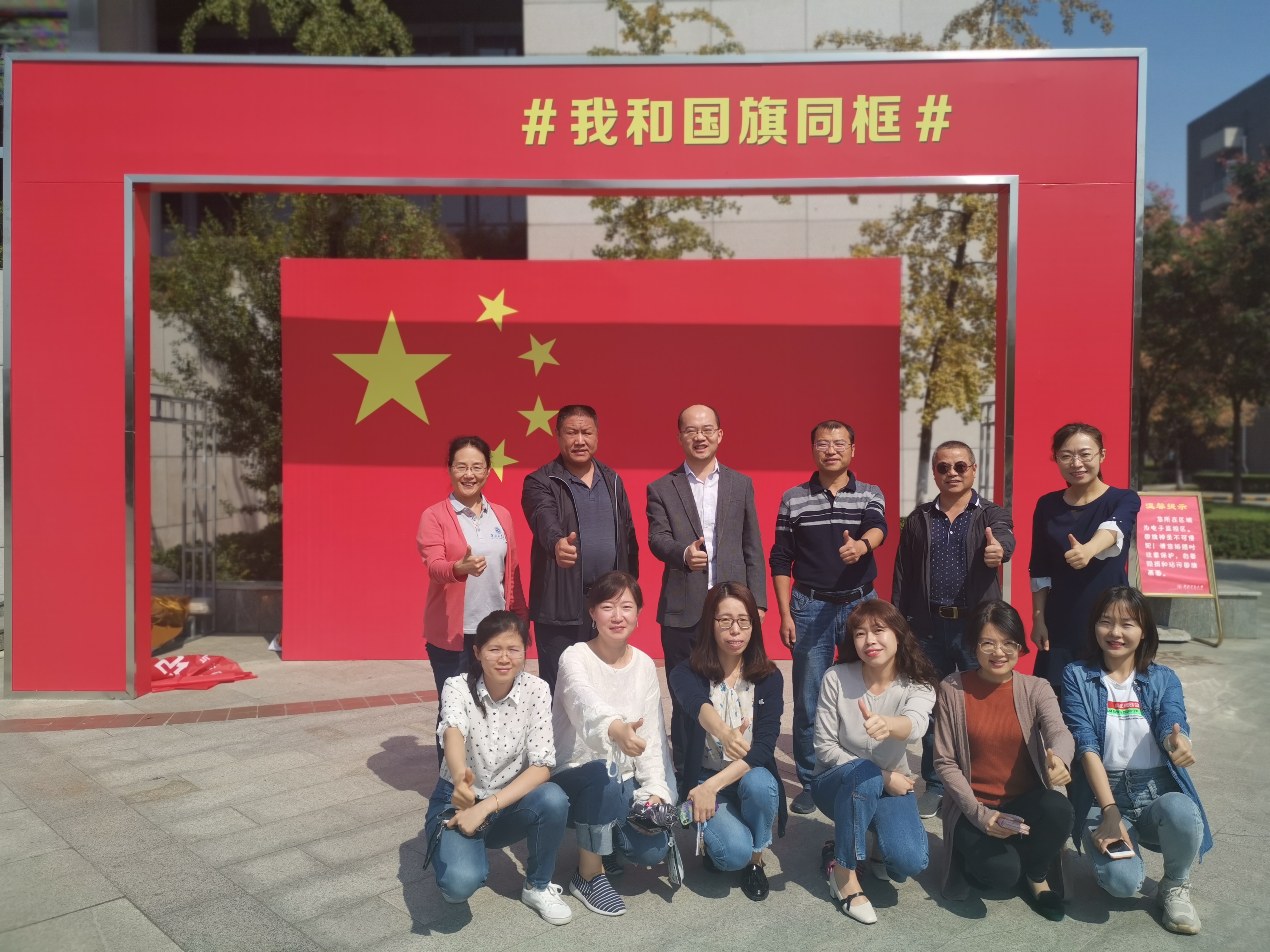 会后,同志们来到公司翱翔员工活动中心广场的 “与祖国同框”前合影。大家站在国旗下,怀着崇敬的心情,向祖国母亲告白,祝福伟大祖国生日快乐!