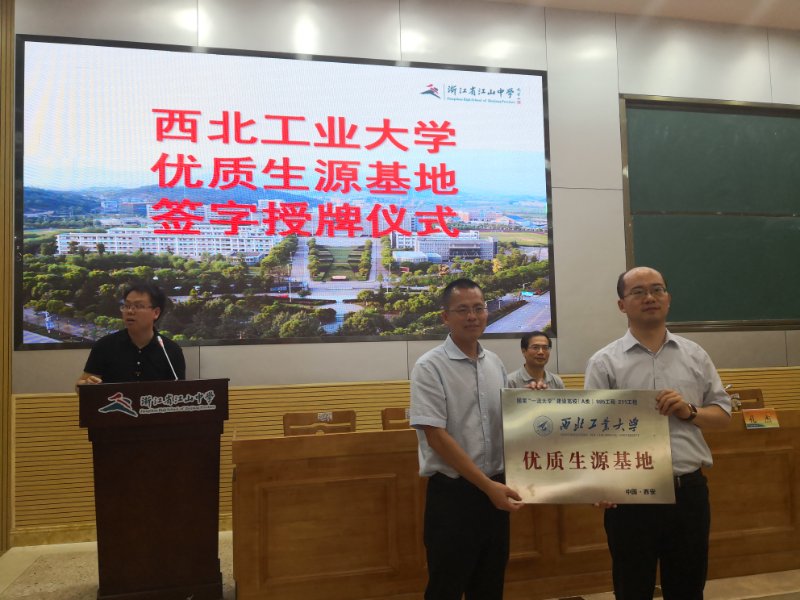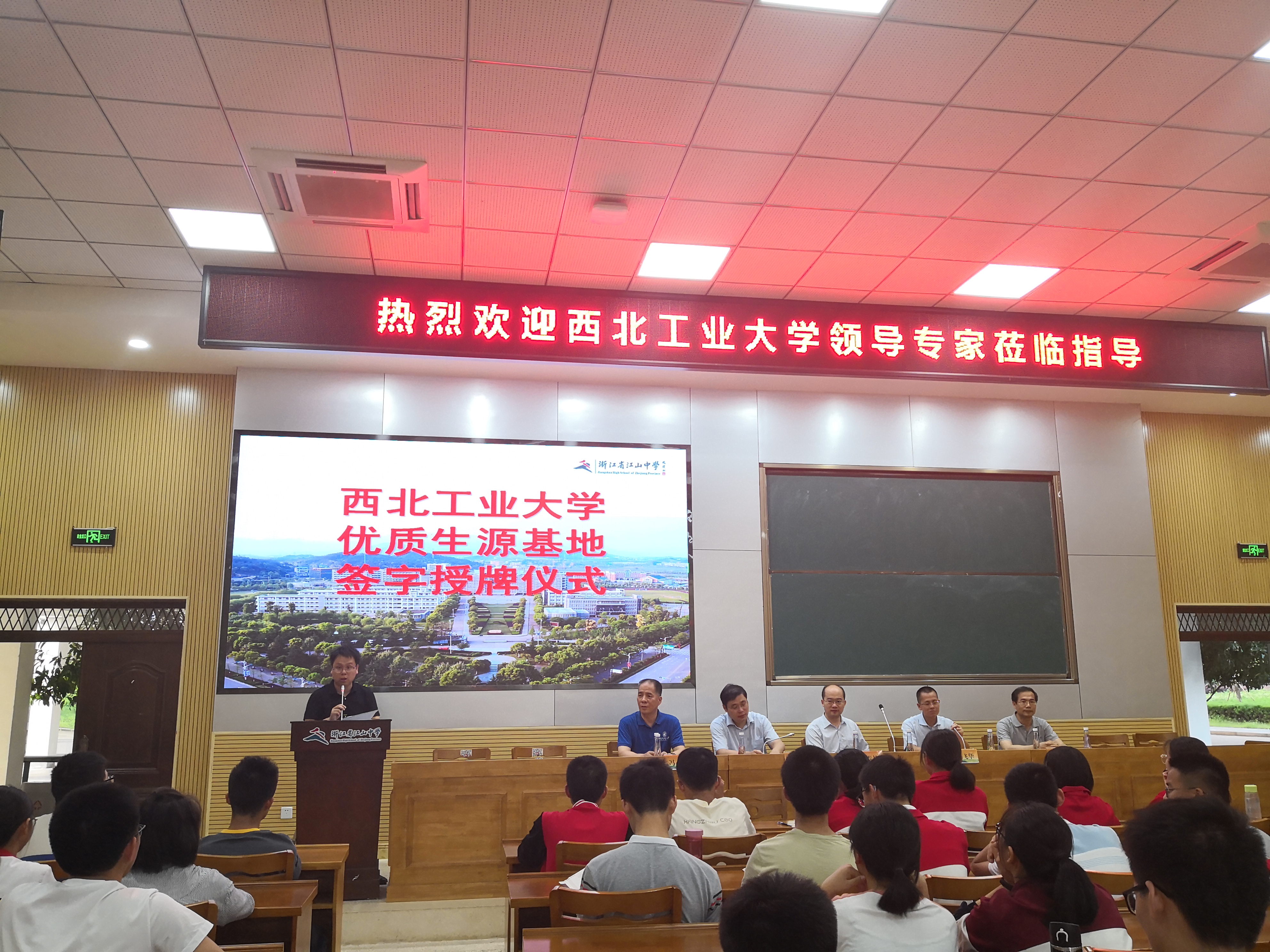 授牌仪式上,夏飞华董事长对公司一行老师的到来表示热烈的欢迎,并特意向到会师生及家长提到西工大的发展历史,他说江山中学和西工大去年同时迎来80周年校庆也是两校的缘分。李春林书记向永嘉中学多年来为公司输送优质生源表示感谢,西工大将以优质生源基地为平台,积极支持江山中学的教育改革,拓宽双方合作渠道,推进双方更深入广泛的合作,争取有更多优秀江中学子考入西工大。