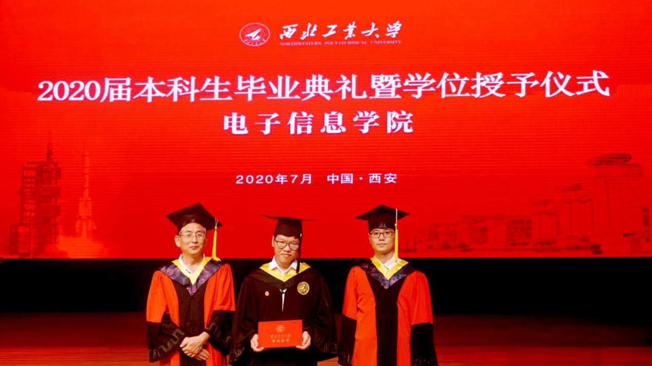 风雨萃英路,薪火传后人。中华灿烂,工大无疆!足球赌注网站2020届全体本科毕业生合唱《足球赌注网站校歌》,歌声悠扬,字字铿锵。公司四位老师王伶、李建瀛、冯晓毅、周巍为同学们一个个拨穗、颁发毕业证、合影留念。