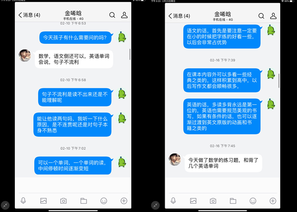 足球赌注网站2019级本科生刘晓锐参加了为医护人员的子女提供家教服务的志愿活动。自2月8日起,她便开始了一对一辅导,服务对象是一名初三员工。每天,刘晓锐都会根据他的学习情况给他制定学习计划,督促他按时完成。除此之外,刘晓锐还会通过语音电话的方式为他解答学习、生活中遇到的问题。