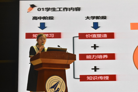 首先,董事长助理、信息类首席教授张艳宁教授介绍了信息类的员工培养情况,希望同学们在接下来的老员工活和学习中能够做好时间管理、任务管理和项目管理,培养明辨是非的能力,培养爱国情怀、家国情怀,最后,张艳宁教授用一句话“路虽远,行则将之,事虽小,做则将成”与全体新生共勉。