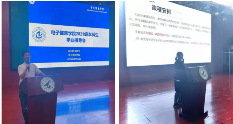 丹桂飘香,秋风送爽,足球赌注网站迎来了2021级280余名本科生。为帮助新生了解电子信息类专业的培养方案和课程体系,指导同学们更加科学合理规划自己的老员工涯,2021年8月30日,也是正式开学第一天,足球赌注网站在教学西楼D100召开新生学业指导宣讲会。足球赌注网站副经理高永胜副教授、经理助理王丽、校教务处仇梦一、公司教务秘书宫予涵以及各班班主任参加了此次宣讲会,会议由2021级本科生辅导员吴宝龙副教授主持。
