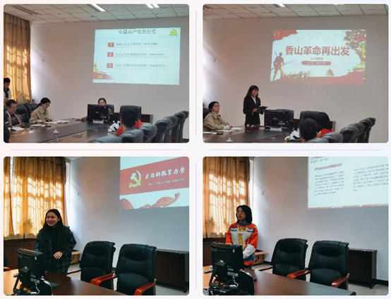 15位党史宣讲人从古田会议、三湾改编、香山革命、抗美援朝、“两弹一星”精神等多角度为大家讲述了自己心中的那段党史。汤志豪同学从曾祖父参加抗美援朝的亲身经历出发,从长津湖讲到上甘岭,号召大家永远铭记和学习志愿军敢打必胜、英勇顽强的牺牲奉献精神;得力巴尔•沙吾列提同学以家乡变化为起点,结合自身社会实践经历,讲述了新时代的脱贫攻坚故事;曾钧同学从自己的兴趣爱好出发,分享了马克思主义文献在中国翻译的历史……