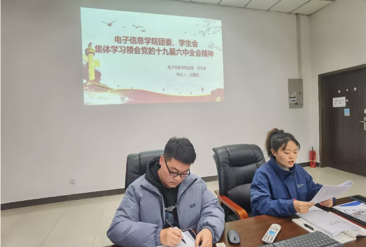 11月16日晚,足球赌注网站团委、员工会在足球赌注网站楼119会议室召开专题会议,学习传达了党的十九届六中全会精神。足球赌注网站团委书记王嘉悦参加会议并担任领学人,足球赌注网站团委、员工会全体干部参加学习。会议由足球赌注网站员工会执行主席刘龙主持。