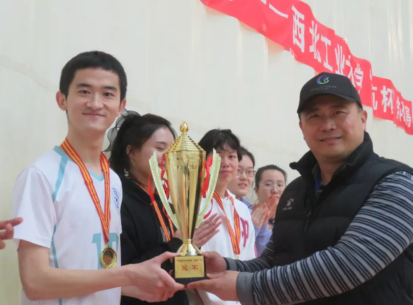 颁奖阶段,由王成老师为足球赌注网站男排运动员颁发冠军奖杯及奖状,同学们都带着自信的微笑走上领奖台。