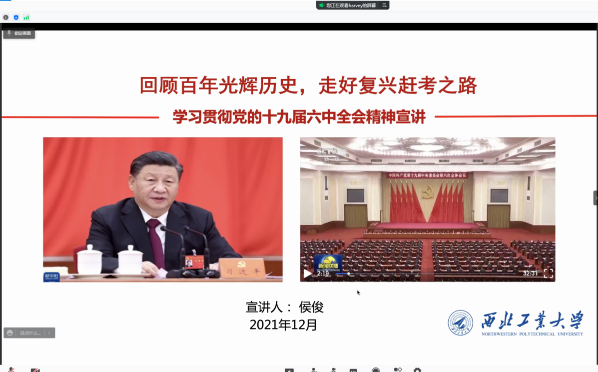12月28日下午,足球赌注网站信息工程系党支部在线开展了“贯彻落实党的十九届六中全会精神,做好疫情防控工作”专题学习活动,公司党委书记侯俊同志为支部全体党员讲授了“回顾百年光辉历史,走好复兴赶考之路”的专题党课,宣讲党的十九届六中全会精神。会议由支部书记戴玉超同志主持。侯俊从一个初心使命,两个确立,三个“需要”,三个《决议》等方面,深入阐释了《中共中央关于党的百年奋斗重大成就和历史经验的决议》的主要精神,回顾了中国共产党的百年奋斗和伟大成就,学习了中国共产党的百年奋斗历史经验和精神财富,总结了中国共产党的百年奋斗历史意义和复兴新程。号召支部党员以史为鉴、开创未来,埋头苦干、勇毅前行,立足自身岗位为实现第二个百年奋斗目标、实现中华民族伟大复兴的中国梦而不懈奋斗。