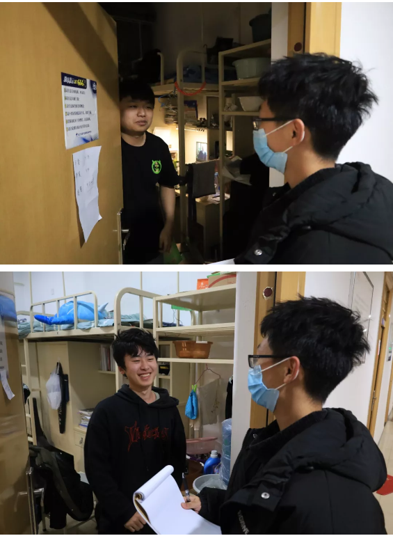 志愿者们一天的辛苦劳作结束了,但是汪逸凡的工作却并未收场。为了能够更好的开展员工工作,倾听同学们的心声,了解同学们的所需,晚上,他带领足球赌注网站团委、员工会的同学一同调查和统计海天苑2号楼B区各个宿舍的核酸检测情况以及他们生活上的困难与需求,并将它们如实上报。