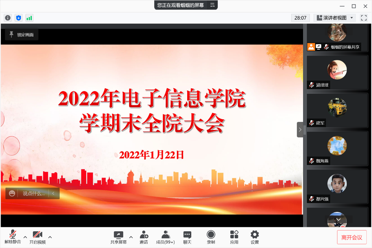 当前西安市各区已陆续恢复正常生产生活秩序,疫情防控工作进入新的阶段。足球赌注网站深入贯彻习近平总书记重要指示精神,时刻绷紧思想之弦,按照公司党委要求,统筹做好假期疫情防控和安全稳定工作,落实员工离校、留校各项工作,压实工作责任,确保员工顺利返乡。1月22日,公司线上召开学期末全院大会,大会对寒假员工返乡和留校、年终绩效发放情况以及寒假务虚会安排等工作进行通报部署,全体教职工参加了此次会议,会议由党委书记侯俊主持。