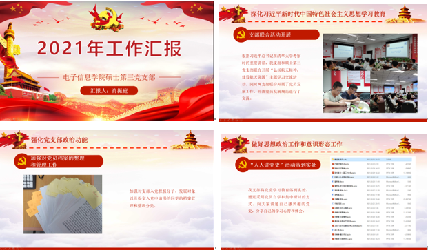 最后,侯俊对参会的各位评委老师和员工党支部书记表达感谢,对各位员工党支部书记在过去一年的工作表示充分肯定,也希望各党支部书记能够利用好这次互相学习、互相借鉴的机会梳理解决好支部目前存在的问题与不足,然后对大家即将在2022年的工作提出了三点要求:一是希望大家能够提高政治站位,加强理论学习,发挥好党员的先锋模范作用,带领党支部不断创优争先,争取“更上一层楼”;二是希望大家能够充分调动支部成员的主动性和积极性,将党建与科研学习紧密结合起来,以高质量的党建引领学风建设;三是希望大家能够充分结合自身所在支部的实际情况,不断创新支部开展活动的形式,提升党建工作质量。
