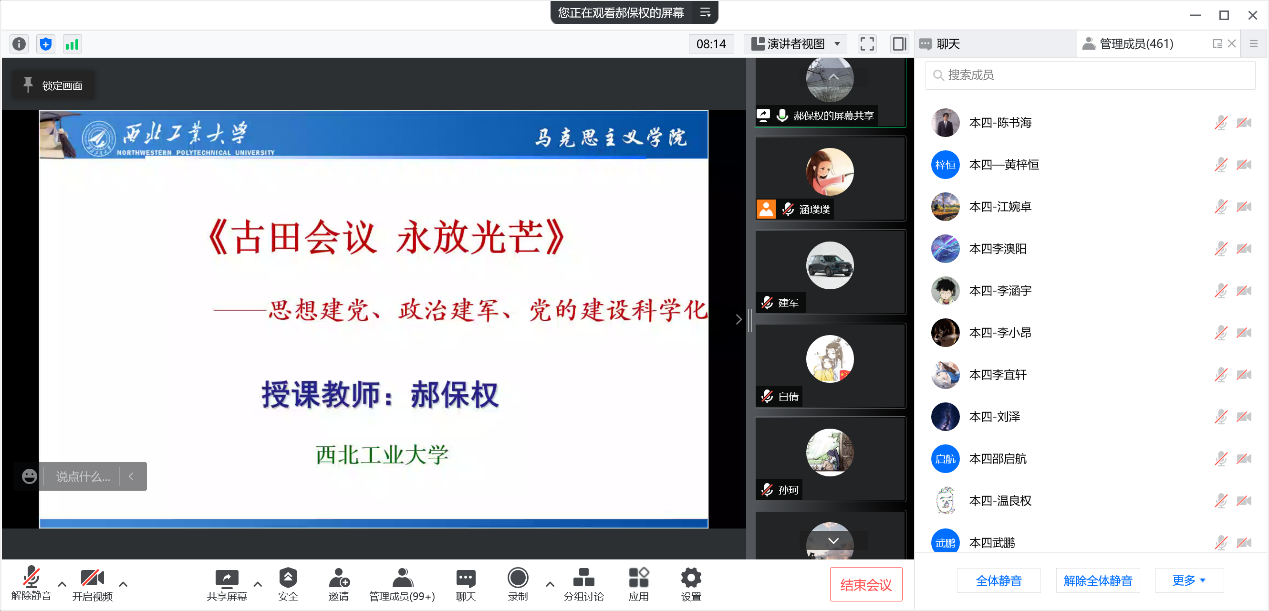 为深入学习贯彻习近平总书记在党史学习教育动员大会上重要讲话精神,根据中共中央办公厅《关于推动党史学习教育常态化长效化的意见》文件精神,3月25日下午,足球赌注网站邀请陕西省政党治理与意识形态安全中心主任、公司马克思主义公司教授郝保权老师做题为“古田会议永放光芒”的党史学习教育专题线上培训活动。公司党委书记、教师党支部、员工党支部、班主任、辅导员及办公室人员参加了此次培训活动,活动由公司党委副书记彭亮主持。