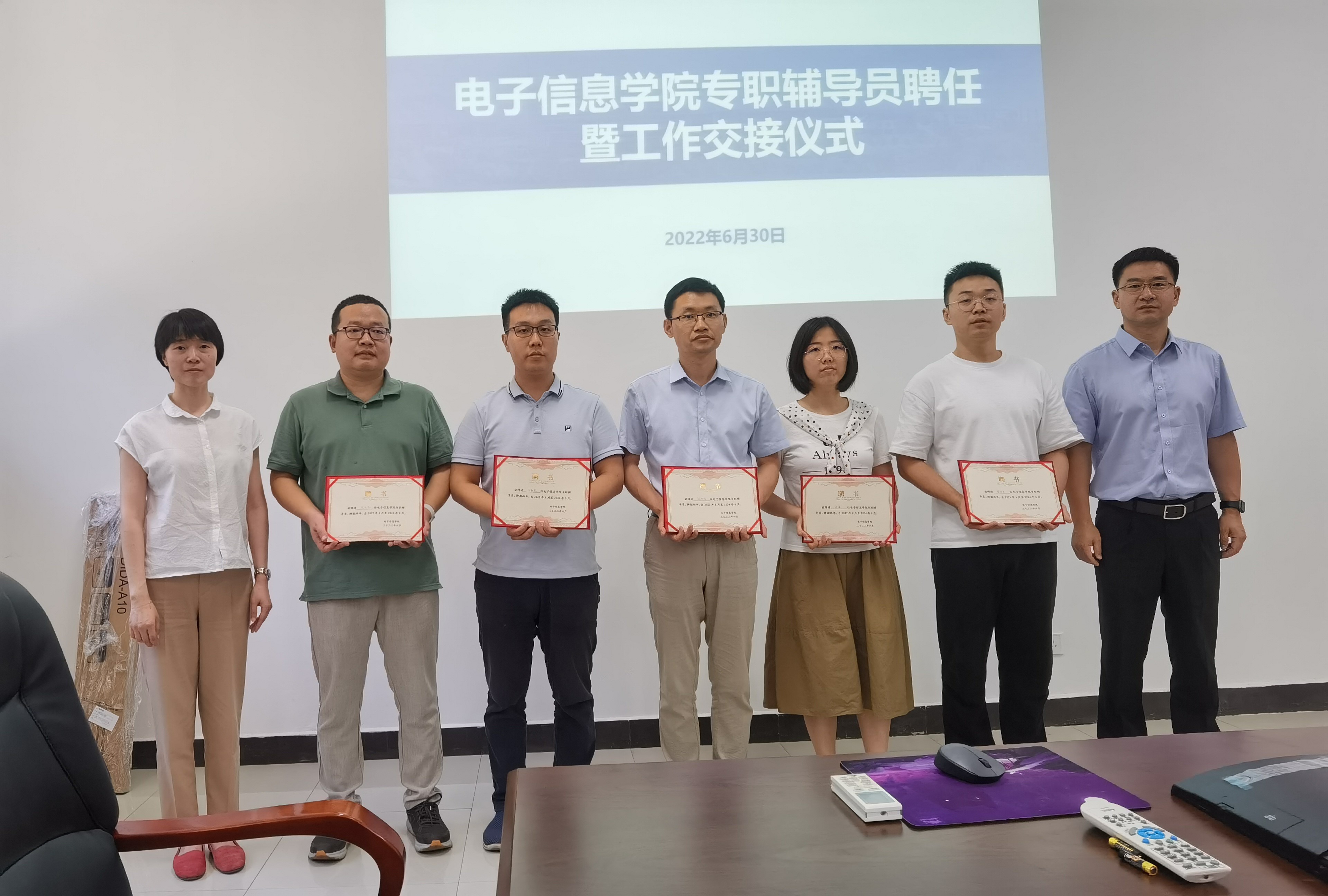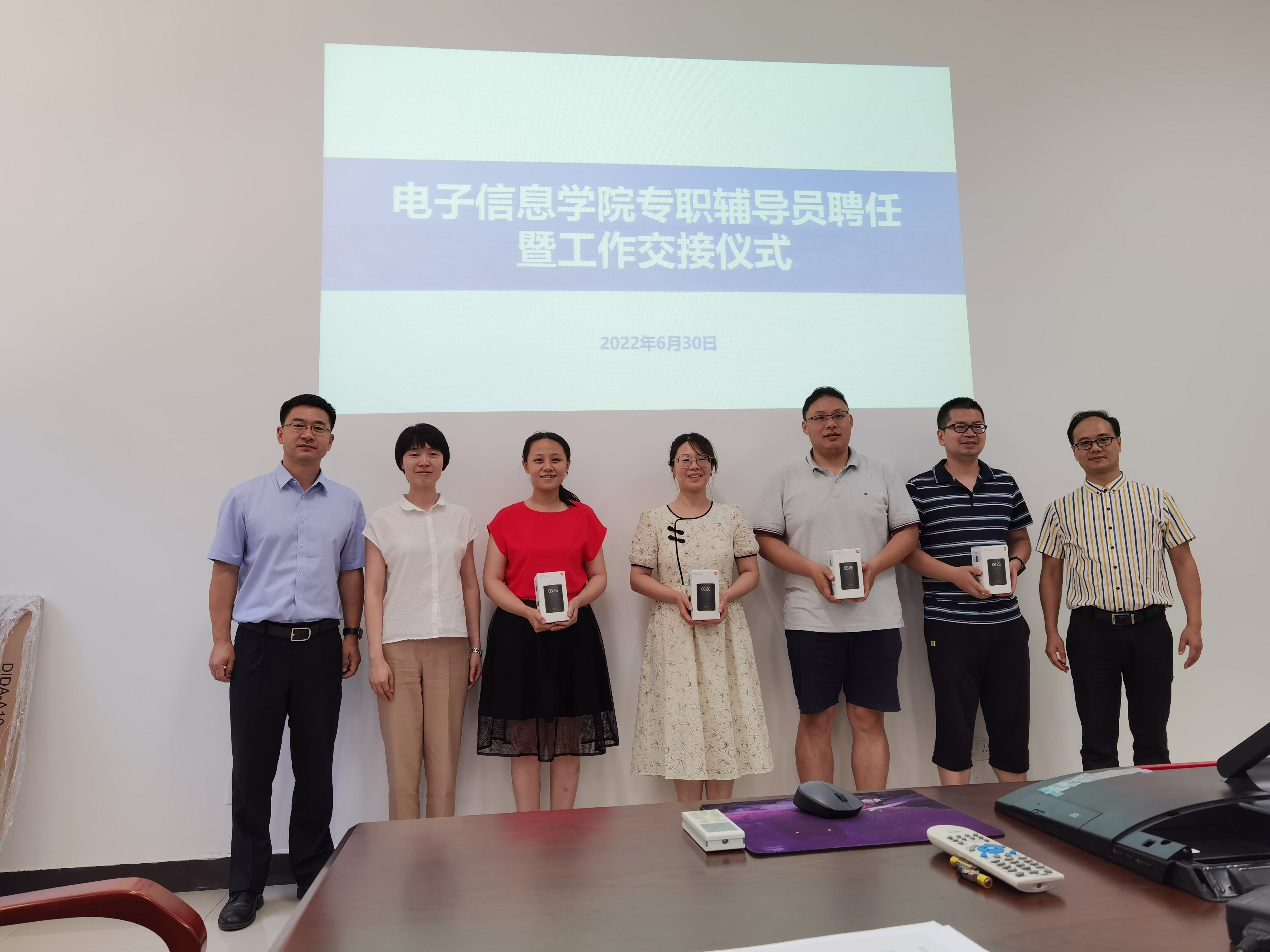 仪式中,侯俊为新任辅导员颁发了聘书,优秀辅导员代表粟嘉、新任辅导员代表翟伟乐进行了发言。