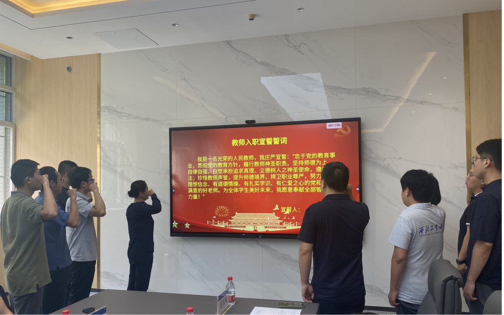 在新进教师入职宣誓仪式上,院领导和荣休教师为新进教师佩戴校徽,党委委员马云红带领新进教师进行了入职宣誓。随后,12位新进教师签订了《师德师风承诺书》。