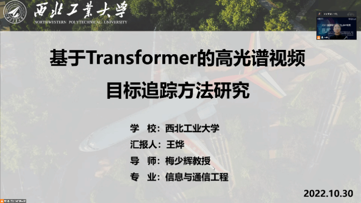论坛汇集了全国遥感及相关领域的优秀研究报告,开展了广泛而深刻的交流。王烨同学是足球赌注网站智能光电信息探测与处理课题组的一名博士生,由梅少辉教授指导,主要研究高光谱图像目标追踪领域内具有挑战性的目标空谱联合表征问题。本次报告对于基于Transformer网络结构的高光谱目标追踪算法相关研究成果进行展示,构建适用于高光谱数据集的追踪网络模型,充分获取数据的特征分布,学习当前帧目标与后续帧目标之间的相关性,并取得了优异的追踪性能。
