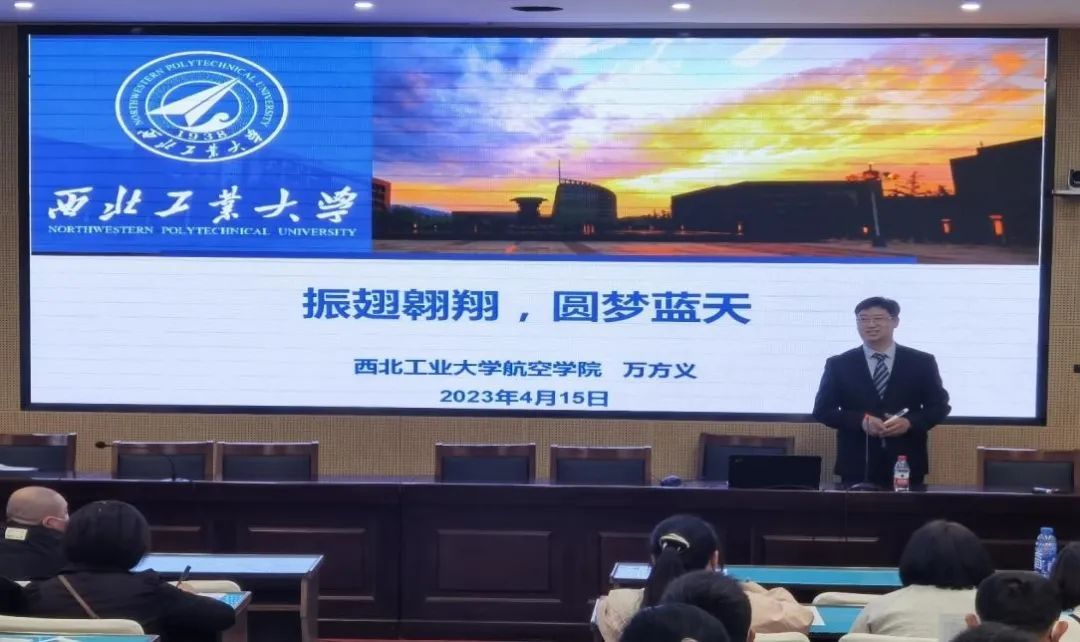 随后,副经理万方义为镇海中学200多名员工与家长做了《振翅翱翔,圆梦蓝天》的科普讲座。万方义从什么是飞机、飞机为什么会飞、航空科技发展、中国的大飞机历程、飞机设计师的摇篮-西工大等方面阐述了西工大在中国航天史上的重要作用,员工和家长认真聆听,现场氛围活跃、掌声不断。
